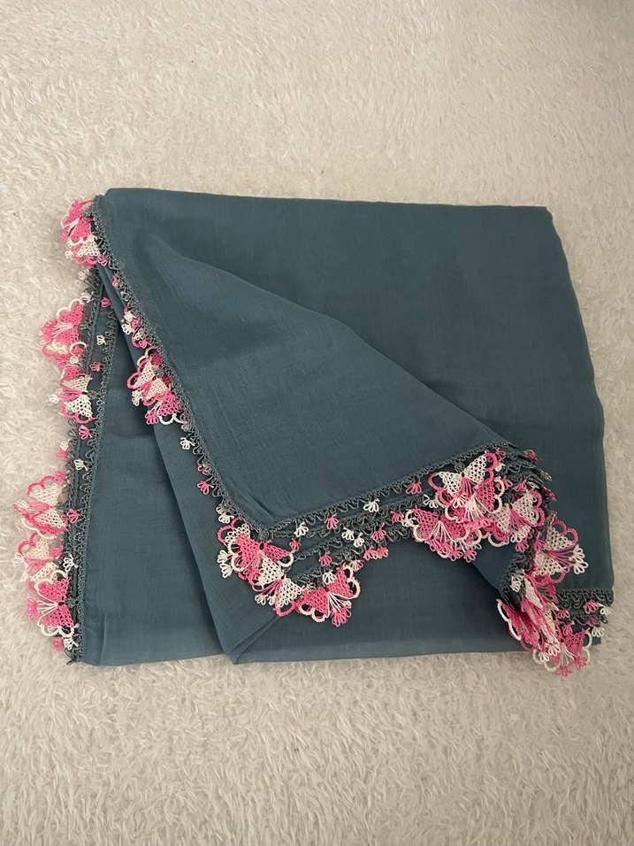 İğne oyası Detaylı Gri Kadın eşarp&yazma&tülbent 90*100 cm ebatlıdır.