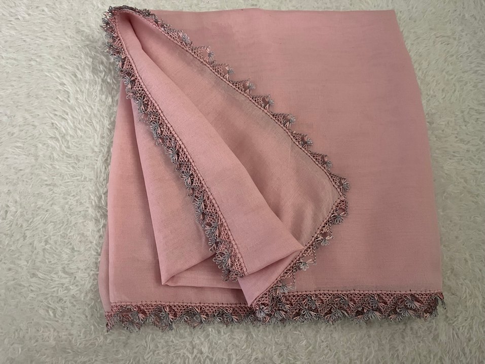İğne oyası Detaylı Pudra Pembe Kadın Eşerp&Yazma&Tülbent