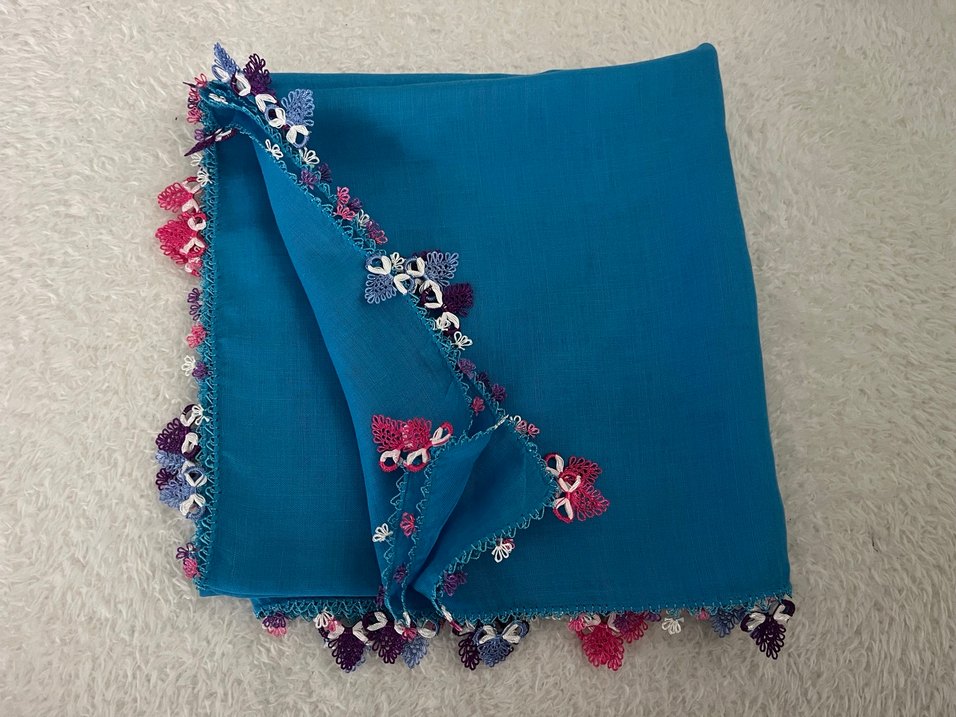 İğne oyası Detaylı Turkuaz mavi Kadın eşarp&yazma&tülbent 90*100 cm ebatlıdır.