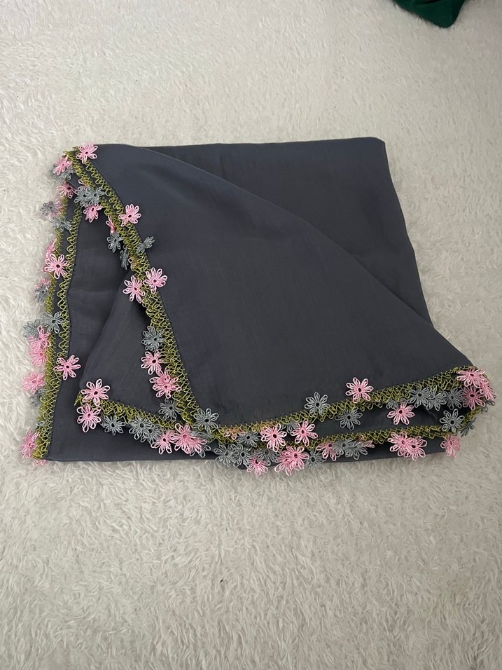 İğne oyası Detaylı Gri Kadın eşarp&yazma&tülbent 90*100 cm ebatlıdır.