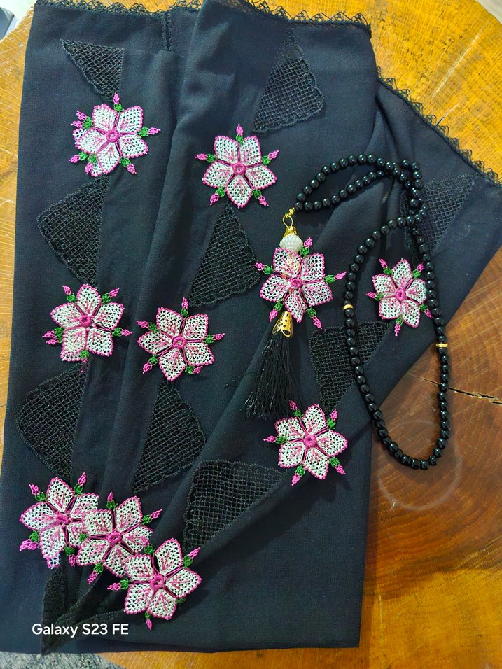 iğne oyası namaz başörtüsü mevlit tülbenti ve tespih ölçüleri 150ye 75cm, üç taraflı model,kendim yapıyorum, bu ürünüm kargoya hazır başka iğne oyası ürünlerim için de dolabima bakabilirsiniz