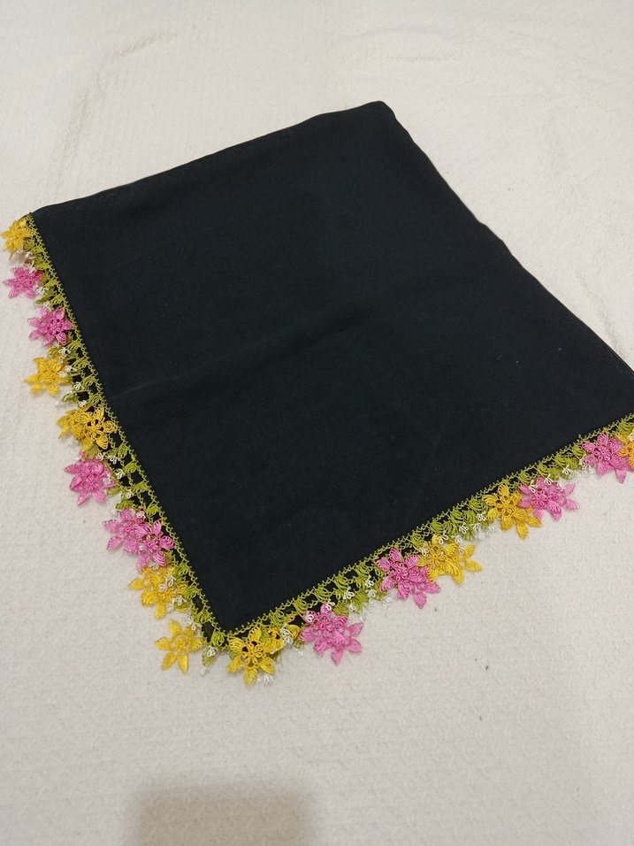 iğne oyalı namaz örtüsü. 3 tarafı iğne oyalı