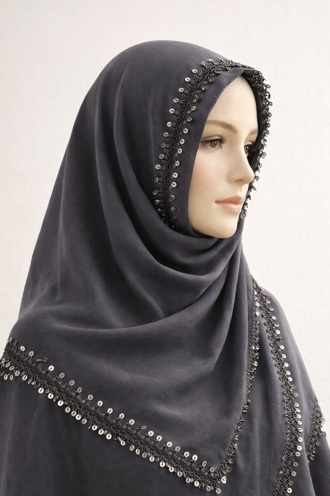 iğne oyası pullu gri renk tülbent ören bayan marka tülbent sıfır ürün. ✨
