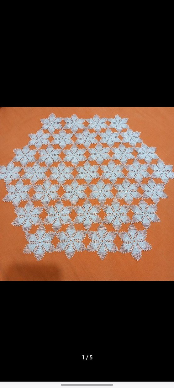 ortası tığ işi kenarları igne oyasi olan sehpa örtüsü floş iple yapılmıştır ütü gerektirmez az kullanılmıştır