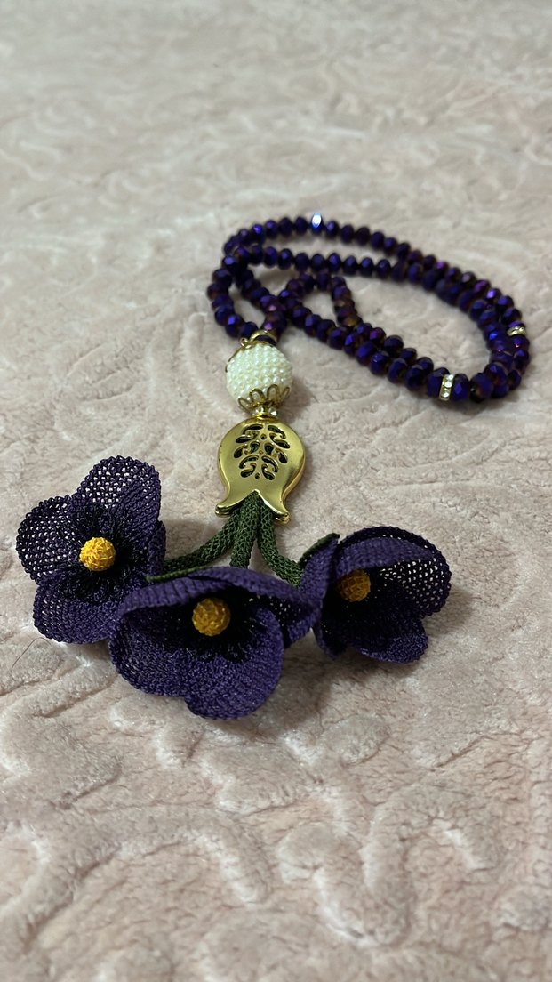 3 boyutlu İğne oyası tesbih gelincik model
