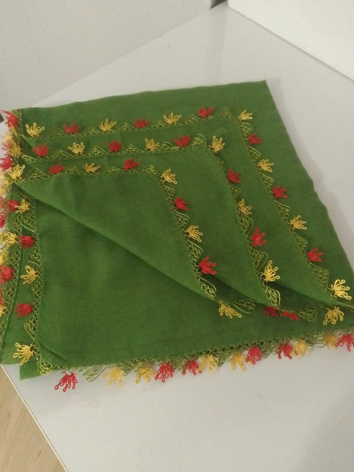 kına yeşili iğne oyası tülbent. sıfır hiç kullanılmamıştır. el emeği göz nuru dur.