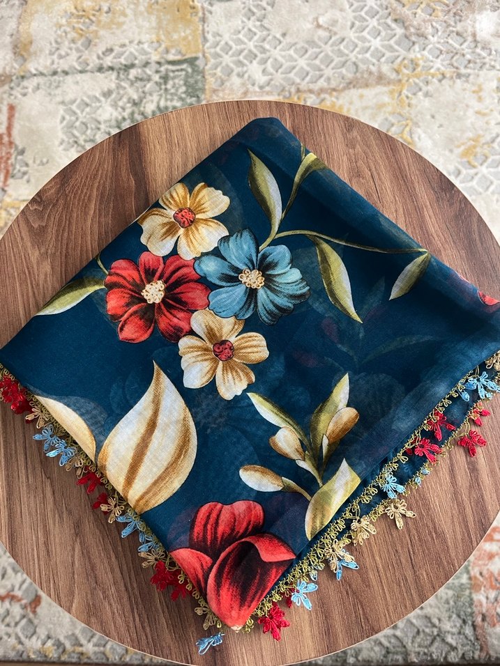 Koyu renkli çok renkli çiçek desenli el emeği iğne oyası yazma Pazarlık payı vardır