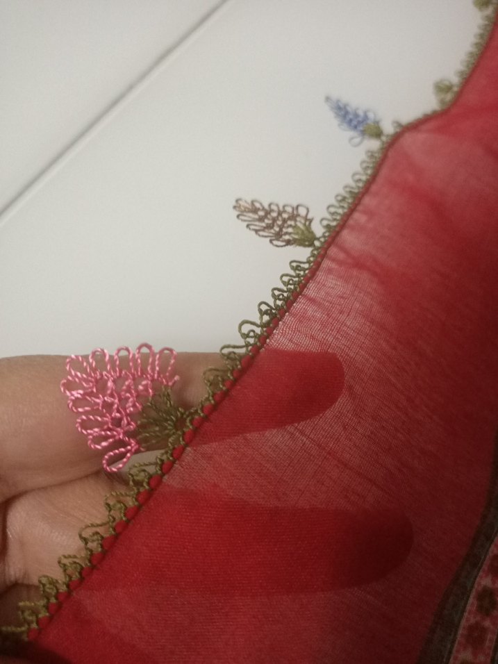 iğne oyasıdır dört kenarıda yapılır elimde başlıdır isteyene tamamlayıp kargolaya bilirim marka reyyan desenli kırmızı yazma