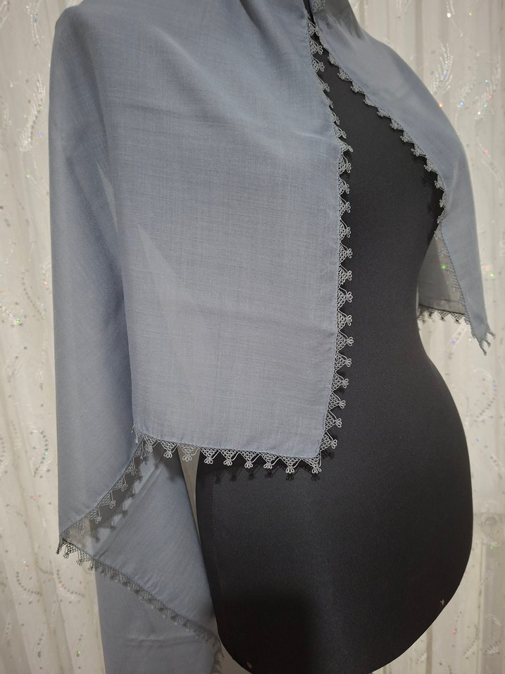 Gri renk iğne oyası yazma suni ipek ip ile yapıldı