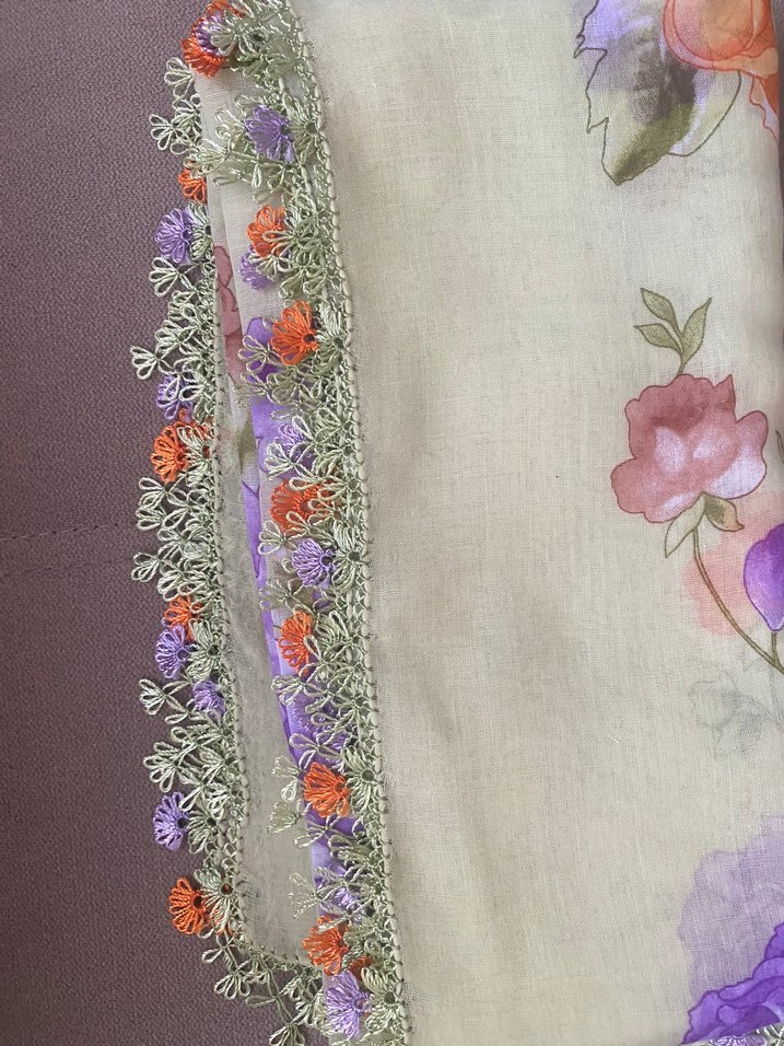Sık işlenmiş pastel tonlarında iğne oyası yazma