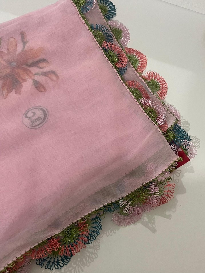 Pastel pembe renkli, çok renkli igne oyası cenk marka yazma