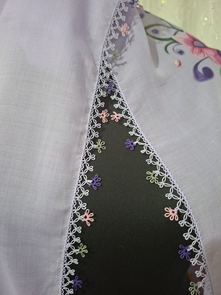 iğne oyası yazma suni ipek ip ile yapıldı belli belirsiz hafif defosu var