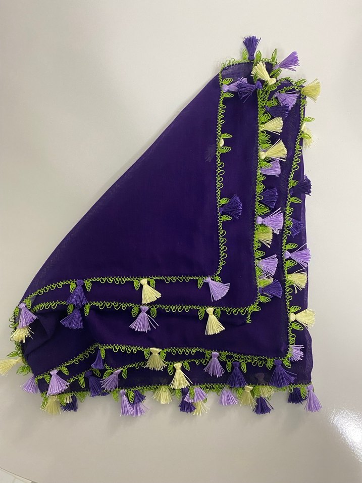 Büyük boy yazma iğne oyası ve püsküllü model dört kenarı oyalı kaşmir marka