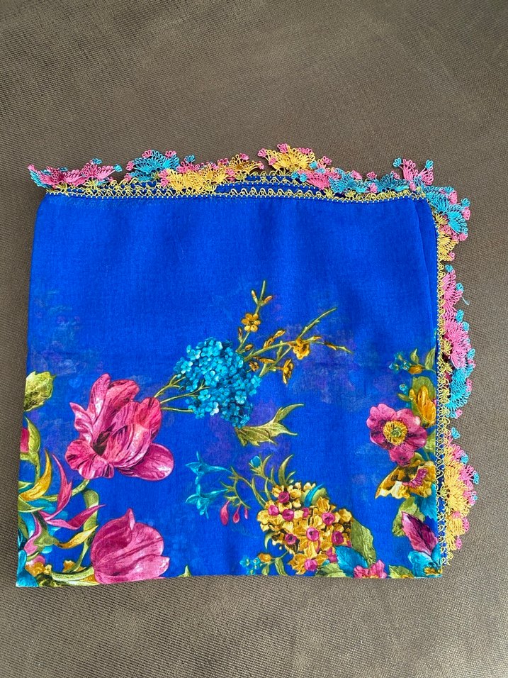 Canlı çiçek desenli, mavi zeminli hiç kullanılmadı