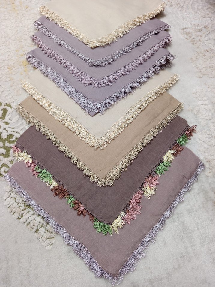 Kadınlar için pastel mor çiçek desenli tekstil fular, dantel detaylarıyla bohem tarzını yansıtıyor. Moda ve yenilikçi görünüm için ideal.