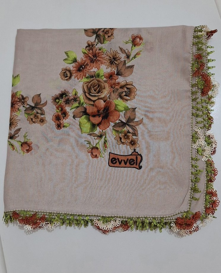 pastel tonlarda kenarı çiçek desenli iğne oyası yemeni