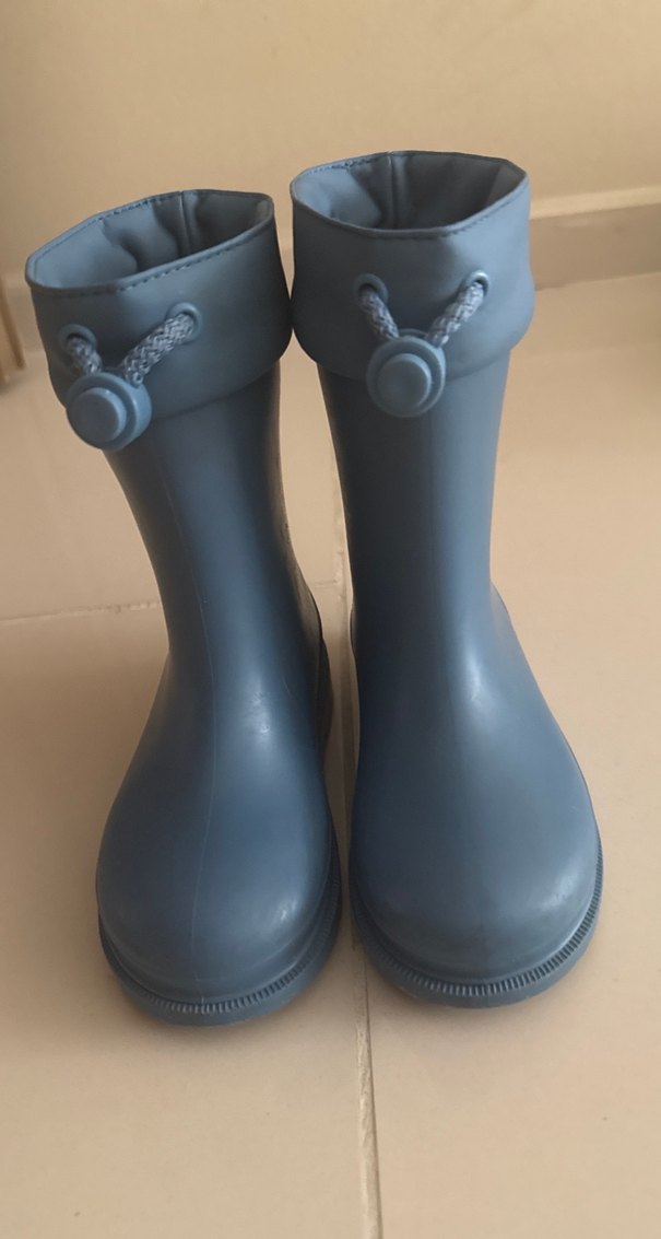 Mavi renkte, lastikten üretilmiş erkek çocuk botlarıdır. Üst kısmında tokalı detay bulunur ve desensiz sade bir tasarıma sahiptir.
