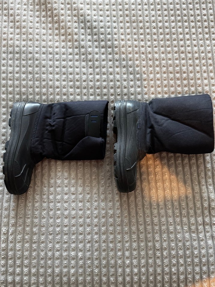 Siyah kauçuk erkek çocuk botları, cırtlı kapanışlıdır ve sokak tarzına uygundur. Desensiz, sade tasarıma sahiptir. 33 numara 1 sezon kullanıldı sorunsuz koyu laciverr
