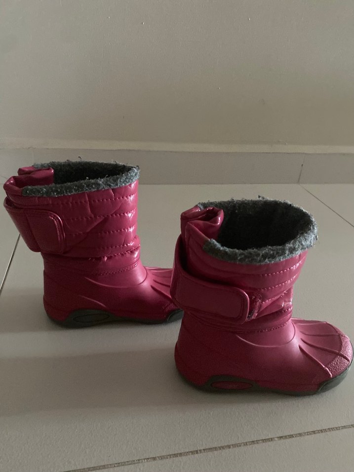 Pembe, kaydırmaz bantlı kız botu, kauçuk malzemeden ve yumuşak astarlı.