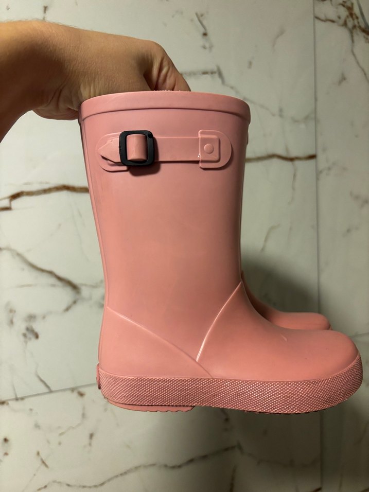 Pastel pembe lastik kız çocuk botları, tokalı kayış ve desensiz sade tasarıma sahiptir, trend günlük stil için uygundur.