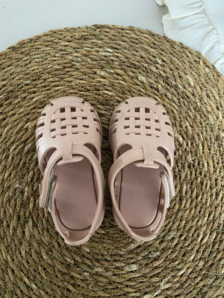 Pembe renkte, tokalı bantlı, sade ve bohem tarzda kız çocuk terliği. Pastel tonlarda, desensiz ve rahat bir tasarıma sahiptir.