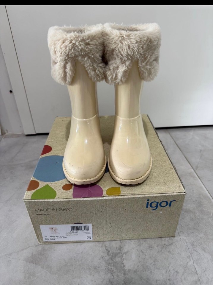 Beyaz kauçuk kız çocuk çizmesi, kürklü detaylarıyla sıcaklık ve şıklık sunar. Igor markasına ait, rahat ve trend görünümlüdür. ️
