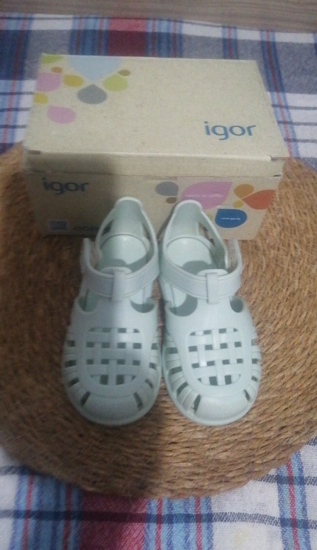 Mint yeşili renkli, cırt cırtlı bantlı, kauçuk malzemeden yapılmış sade erkek çocuk sandalet. 'igor' yazısı bant üzerinde yer alır Faturası vardır. Orijinal markadır.