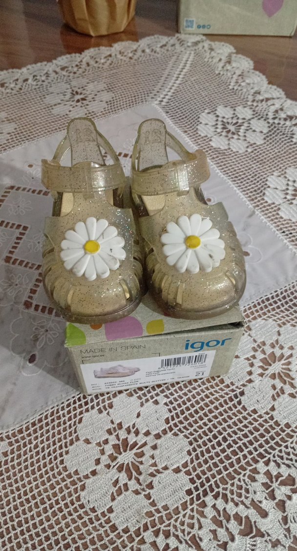 Işıltılı plastikten yapılmış, beyaz papatya detaylı kız çocuk sandaletleri. Rahat ve kullanışlıdır. kaymaz taban sıfır gibi makinede yıkanılabilir hiçbir deformasyon olmuyor ben yıkamadım bir hafta kullandık çok fazla memnunuz yıllardır tercih ettiğimiz model ve marka.