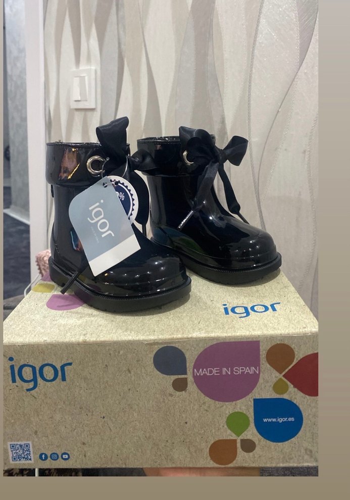 İspanya üretimi Igor marka, siyah parlak kauçuk kız çocuk botları, desenli ve kurdele bağcıklı, gotik tarzda modaya uygun. 21 numara hiç kullanılmadı doğum gününde hediye geldi ayağına küçük geldi