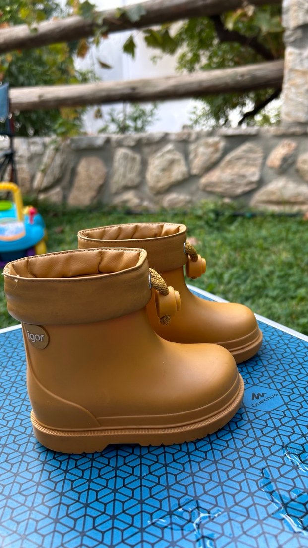 Hardal kauçuk bebek yağmur botu, kullanıldı, bir sıkıntısı yok görselleri net çektim. 21 numara. Oğluma olmuyor.