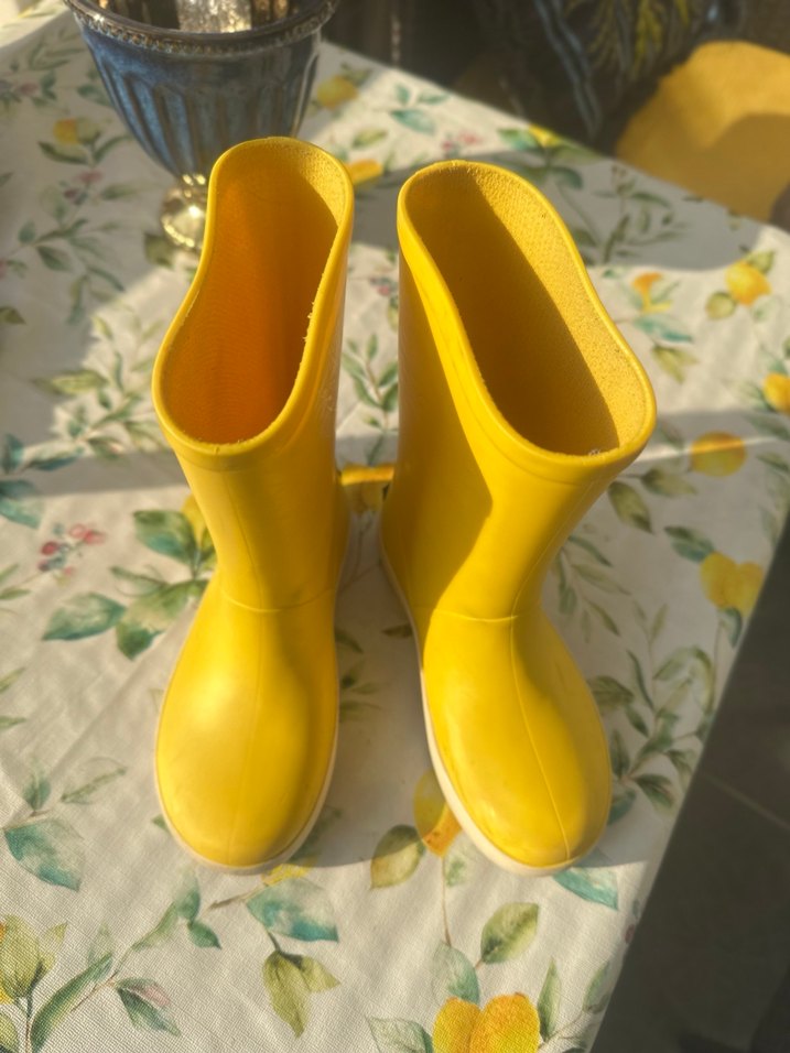 Sarı renkli, rugan malzemeden yapılmış, yağmur çizmesi. Düz desensiz, tokalı detaylarıyla minimalist ve şık bir görünüme sahip. Günlük kullanıma uygun. ☔