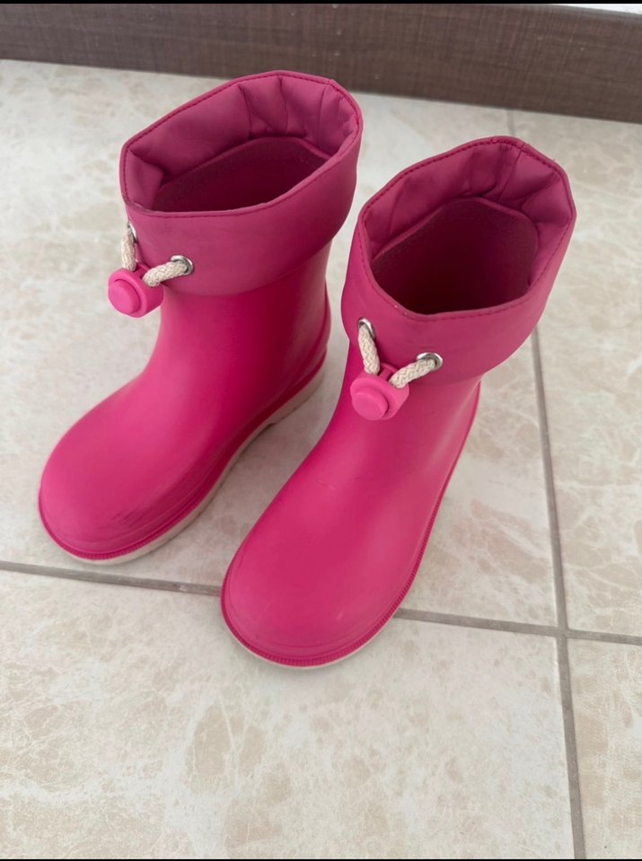 Tertemiz az kullanılmış. Kız çocukları için lastik pembe çizme, tokalı ve düz tasarımlı. Canlı renkli, desensiz ve normcore tarzda.