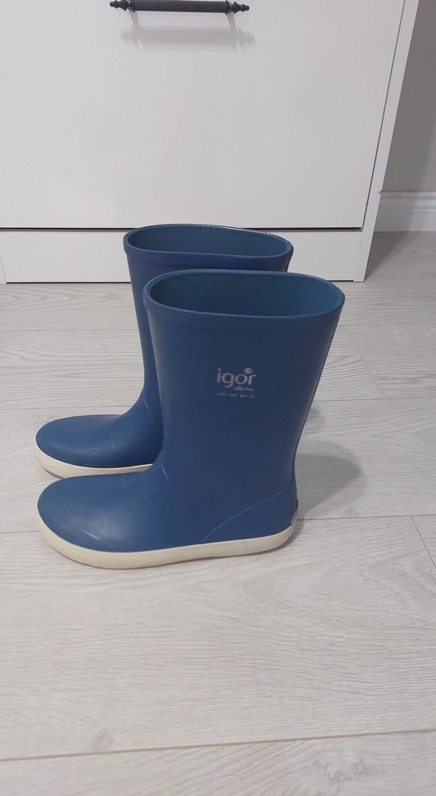 Igor markalı, lacivert kauçuk erkek çocuk botları, desensiz ve renkli, sade bir şıklık sunar.