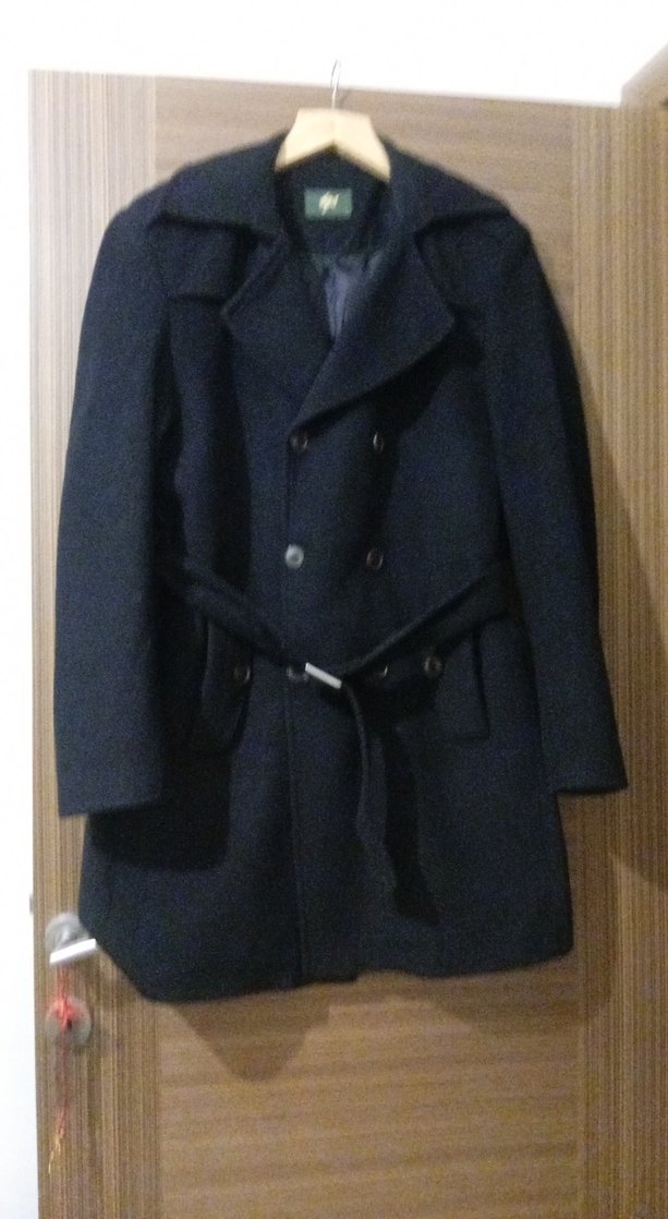 Kemerli ve sivri yakalı bu erkek kaban, normal kesim ve uzun kolludur. siyah renkte, desen içermeyen, ofis için uygun klasik normcore tarzında midi uzunluktadır. Yumuşak ve sıcak kumaştan üretilmiştir. %60 yün kumaş
