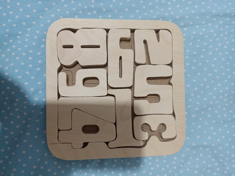 Beyaz ahşaptan yapılmış bu eğitici oyuncak, sayı tanıma ve öğrenmeyi destekleyen büyük sayılar içerir. iki uc kere kullanildi. kucuk cocuklar icin oyalayici ve ogretici