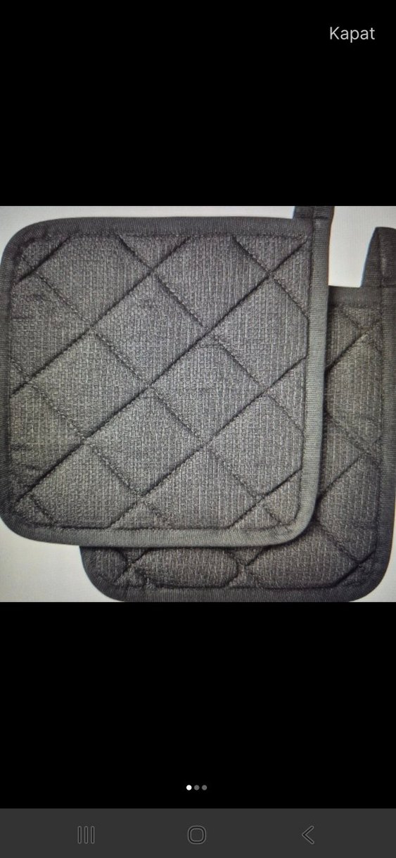 Gri renkte, ısıya karşı koruma sağlayan kapitone dokulu fırın eldiveni seti. Desensiz tasarımıyla sıcak kapları güvenle tutmanızı sağlar.