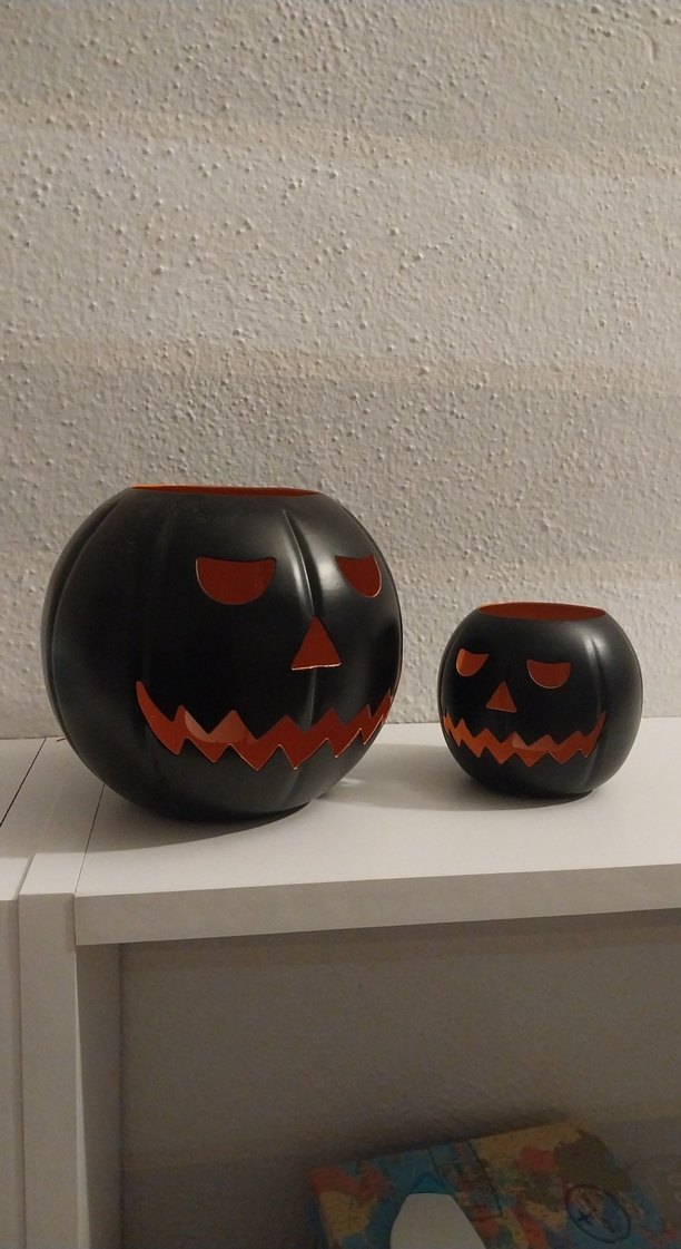 ikea kustfyr serisi buyuk kucuk 2 li metal balkabağı mumluk seti. halloween.
