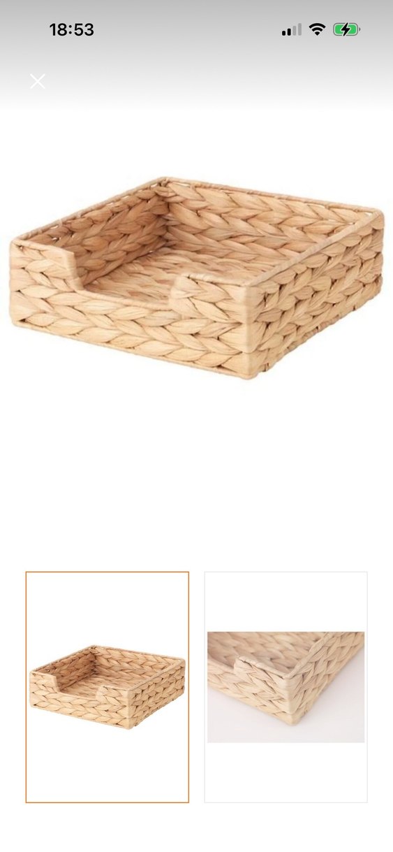Bej renkli, örgü dokulu, açık üstü kare şeklinde hasır peçetelik. Evimde hasır kullanmak istemediğim için satıyorum. 18x18 ölçüsü.