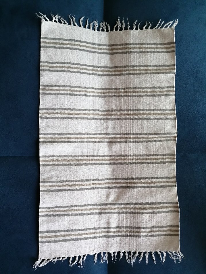 Sorunsuz. Temiz. Pamuk dokuma kilim. Tek yerde hafif iplik kabarması var gösterildi kusur değil. Tek yerde püskül koptuğundan oradaki dokuma gevşemiş gösterildi. İkea ürünü etiketi kesmiştim. İadesi yoktur. Göründüğü gibidir.