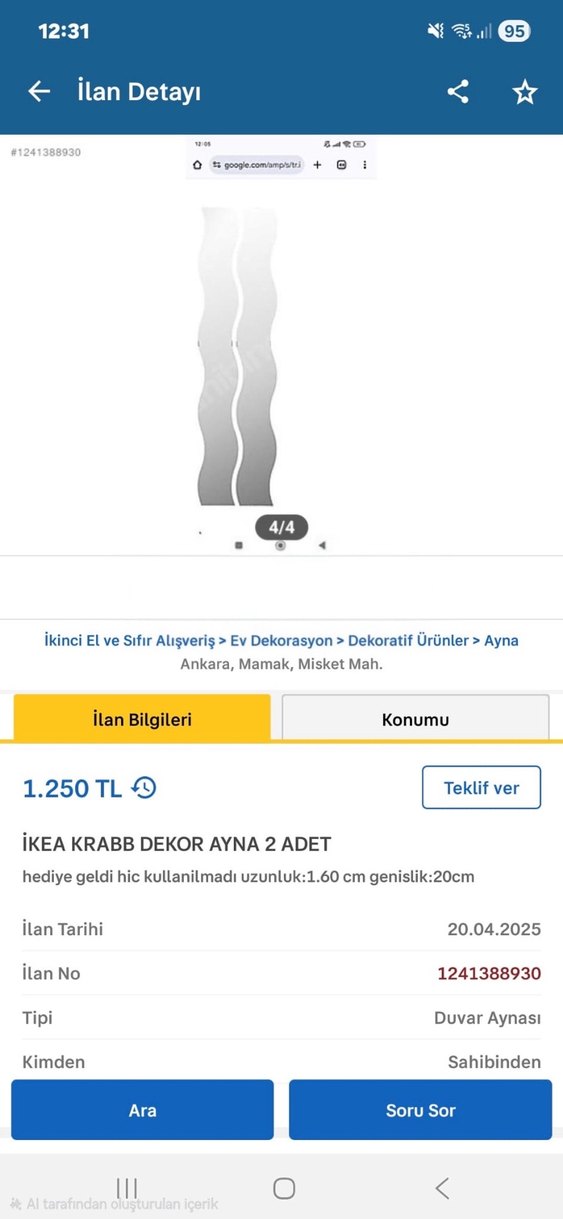 Ikea KRABB Duvar Aynası 20x20x1.60 cm Dalgalı tasarımlı duvar aynasıdır. Çok az kullanıldı kaldırıldı. Elimde son 1 adet kaldı. Montaj vidaları da mevcuttur. Diğer ilanlarımada bakabilirsiniz. Ümraniye