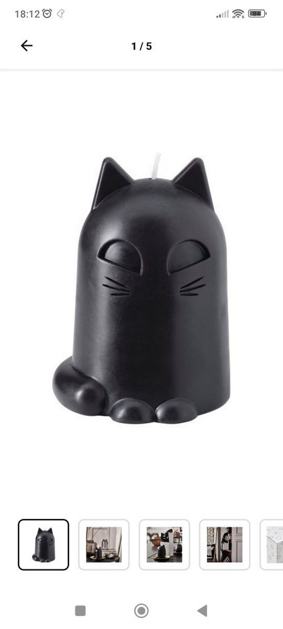 Kulakları, gözleri ve patileri detaylı siyah kedi şeklinde mum, ortama şirin bir dokunuş katıyor. ️ıkea kutusunda ağır tok bir durusu var elime alıp resim çektiğim teşhir ürünüydü. YOLLANACAK ÜRÜN KUTUSINDA HİÇ AÇILMAMIŞ SON FİYAT