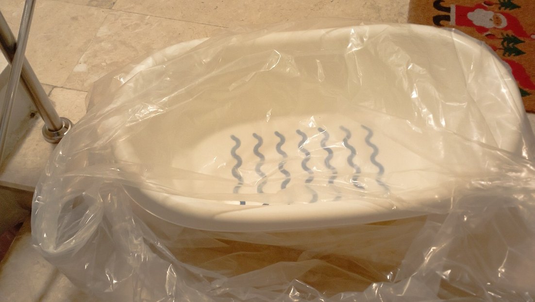 Kaymaz tabanlı, dayanıklı malzemeden yapılmış bebek banyo küveti. Hafif ve temizlemesi kolaydır. Sorunsuz, temiz kullanılmıştır.