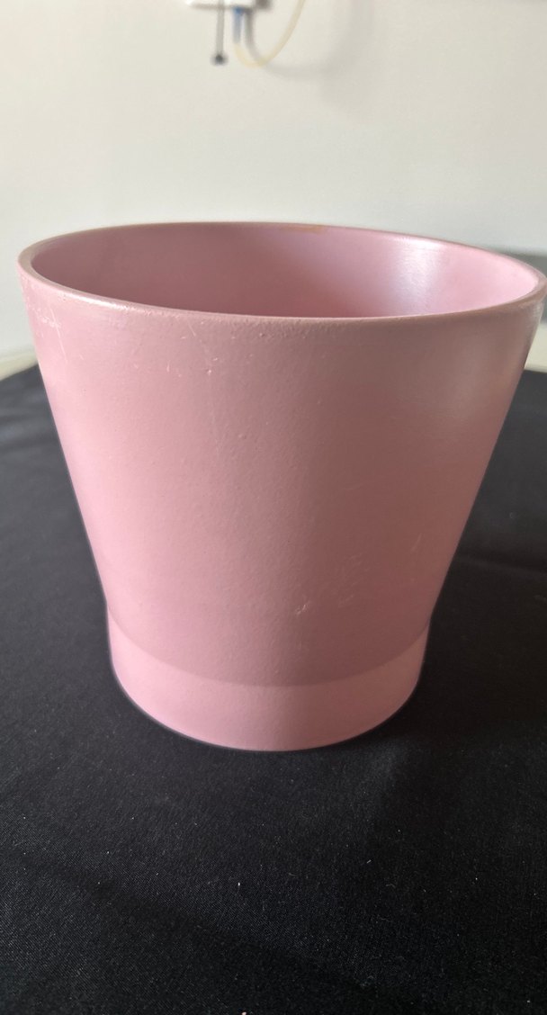 Pastel pembe renkte, seramikten yapılmış, sade ve şık bir vazo.