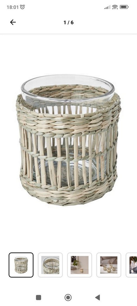 SLIPPRIG el yapımı sazdan üretilmiş, camlı ve bej-gri dokuma tasarımlı tealight mumluk. ️sıfır ürün tekli fiyat