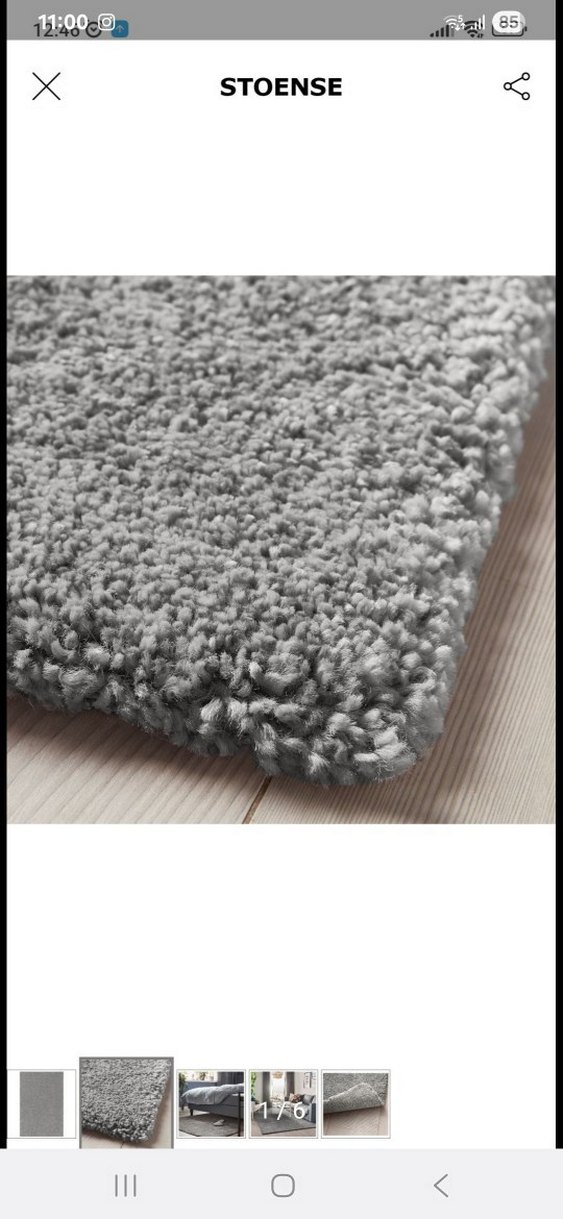 #ikea #stoense Gri renkte, modern tarzda, desensiz ve yumuşak dokulu halı. Kedi halının arkasını tırmıklamış, iplikleri çıkmış ama arkada kalıyor, önde birsey yok kesinlikle, arkada sadece bir bölümünde var..Leke, ezilme vs hic birsey yok, sadece arkada bir bölümde tırmıklanmis durumu var o kadar. İadem yoktur, herseyi fotoğraflıyorum. Almadan sorunuz lütfen.