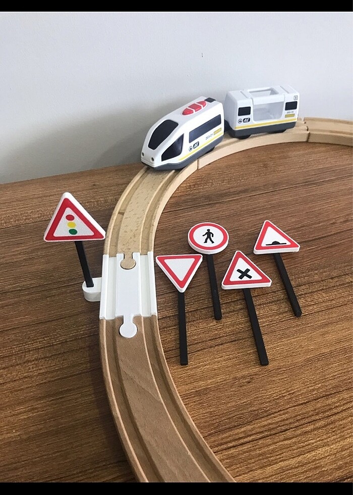 İkea lillabo tren setleri ile uyumlu trafik işaretli yol 1 adet yol 5 adet trafik işareti olarak gonderilecektir istediginiz farklı levhalar için bilgi verebilirsiniz 3d yazıcı ile üretilmektedir