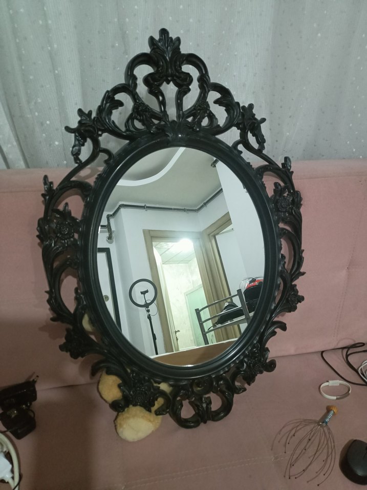 Koyu renk işlemeli çerçeveli siyah oval dekoratif ayna, odalara vintage bir hava katıyor. İkea Vintage Tac Model Siyah Dekoratif Oval Ayna İkea ayna 85cm boy plastik dışı 60cm en plastik dışı Ayna ölçüleri 48cm boy 38 cm eni diğer duyulmamis markalarin internet satış fiyatı bile 1500tl iken ikeanin kendi ürünü bu aynayı uygun fiyatla satıyorum.