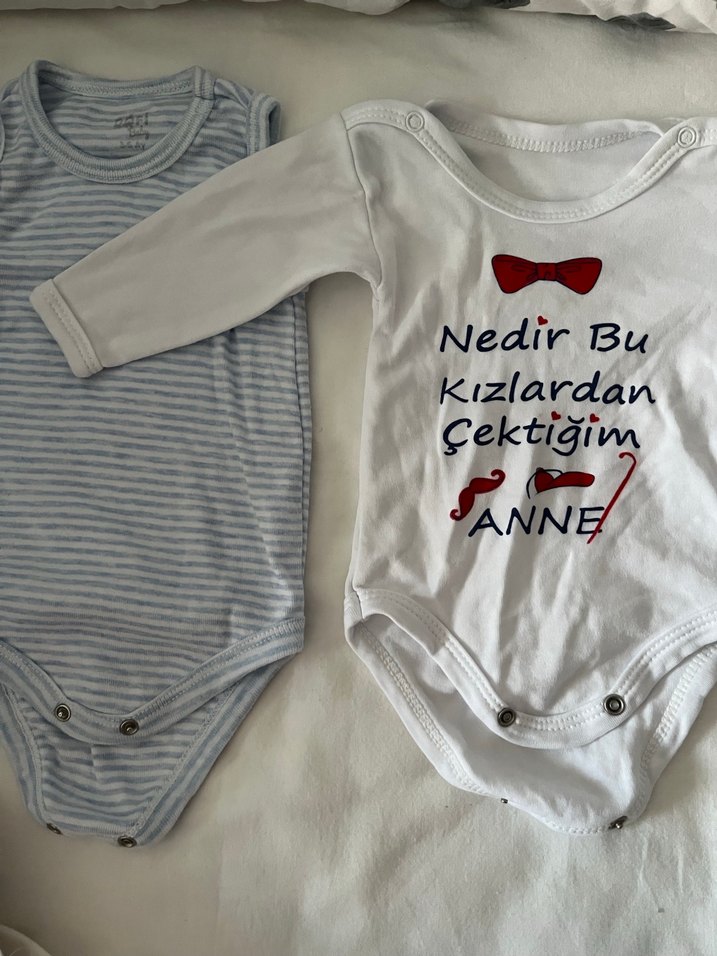 İki adet Baskılı Pamuklu Bebek Çıtçıtlı Body