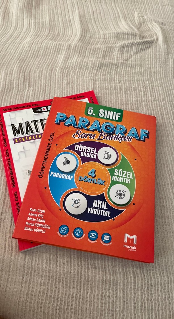 İki adet beşinci sınıf test kitabı çok az sayfaları çözüldü