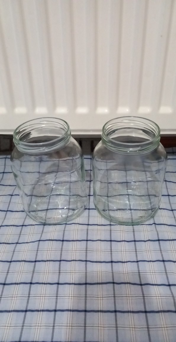 iki adet cam kavanoz temiz içindeki ürün bitti yıkanıp kaldırıldı 85 cl yazıyor